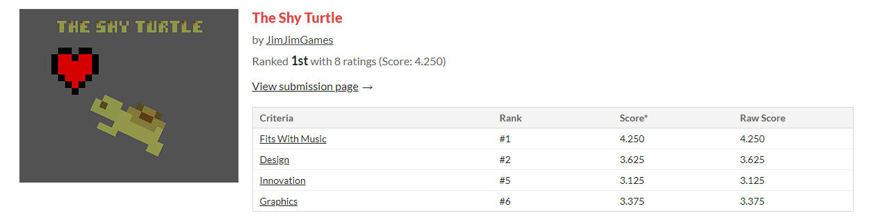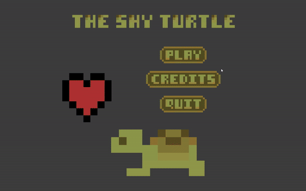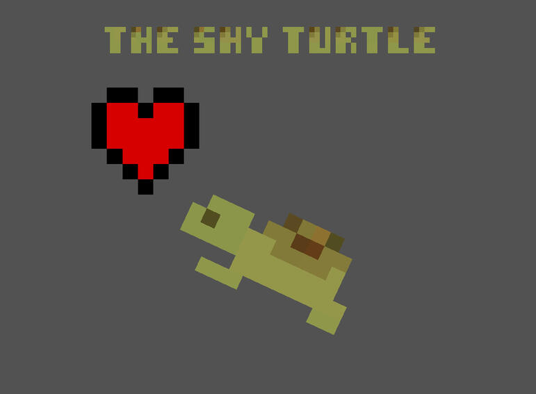 This game was made for a game jam that lasted roughly 2 and a half days. I, along with the other contestants were all given the task of making a game that fits best with the given music. And so when I got the music, I listened to it over and over again until I just about had it memorized. I then made multiple prototypes throughout the first 70% of the game jam, however, I wasn't fond of any. It was then when I made a bunny image, that my friend teased me about it looking like a turtle.We then joked around for a bit about it and then it popped into my head, a game about a self-conscious turtle. This game in my head would be cute but also have a deeper meaning. And so I began to create it in the few hours I had left. I recolored some assets from the earlier prototypes and slapped them into the game and soon enough the game was finished.Throughout this game the player may view it however they would like to. Is this a shy turtle? Is this turtle playing hide and seek with me? Is this my pet turtle? All these questions allow for the player to form their own mental image of what the games narrative is like, allowing for a more personal experience during gameplay. The game was made in Unity2D and the assets were made online using Pixilart.
